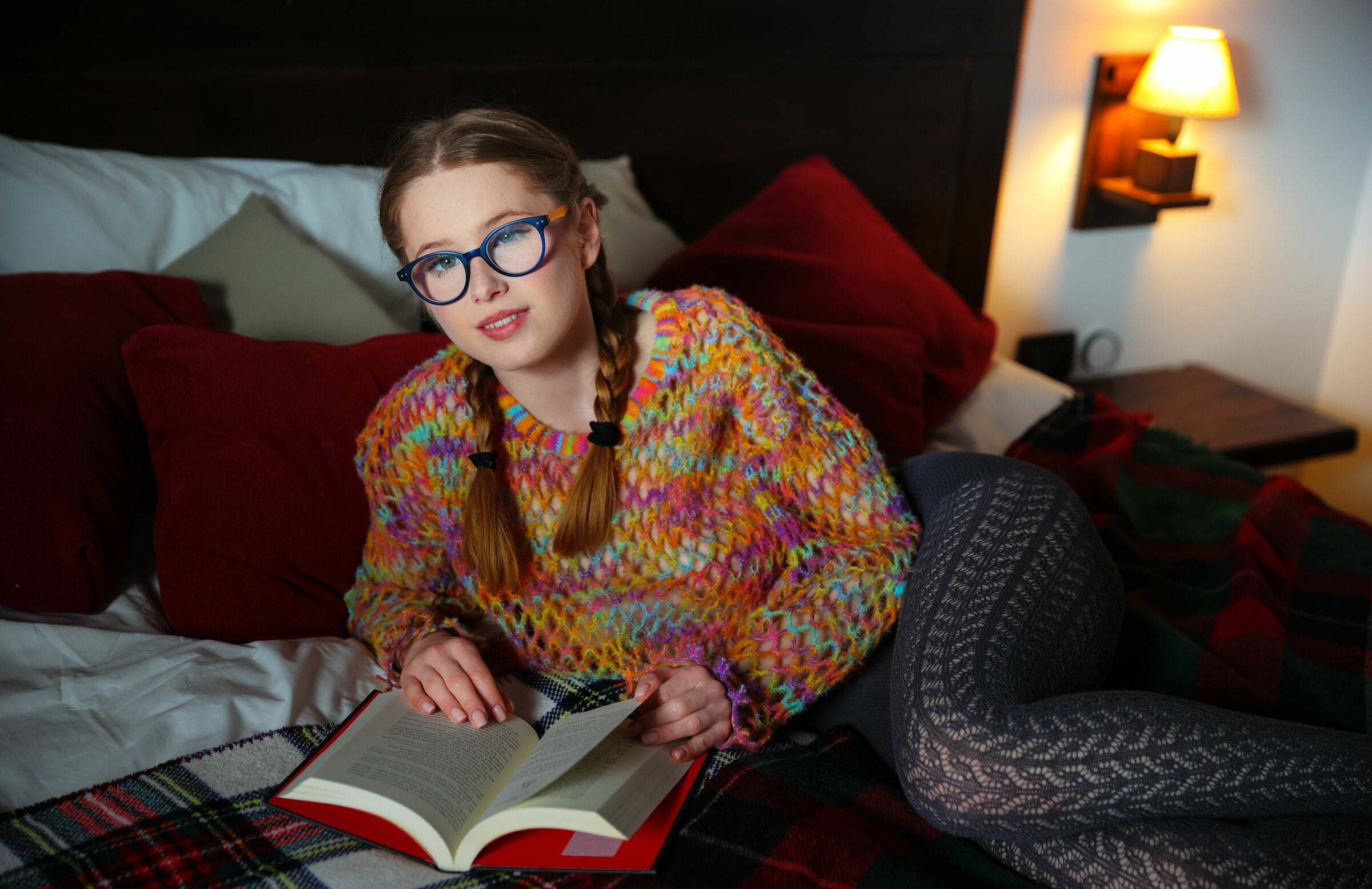 Gorąca dupa Laura Lit zdejmuje czerwoną sukienkę i rozkłada nogi na sofie