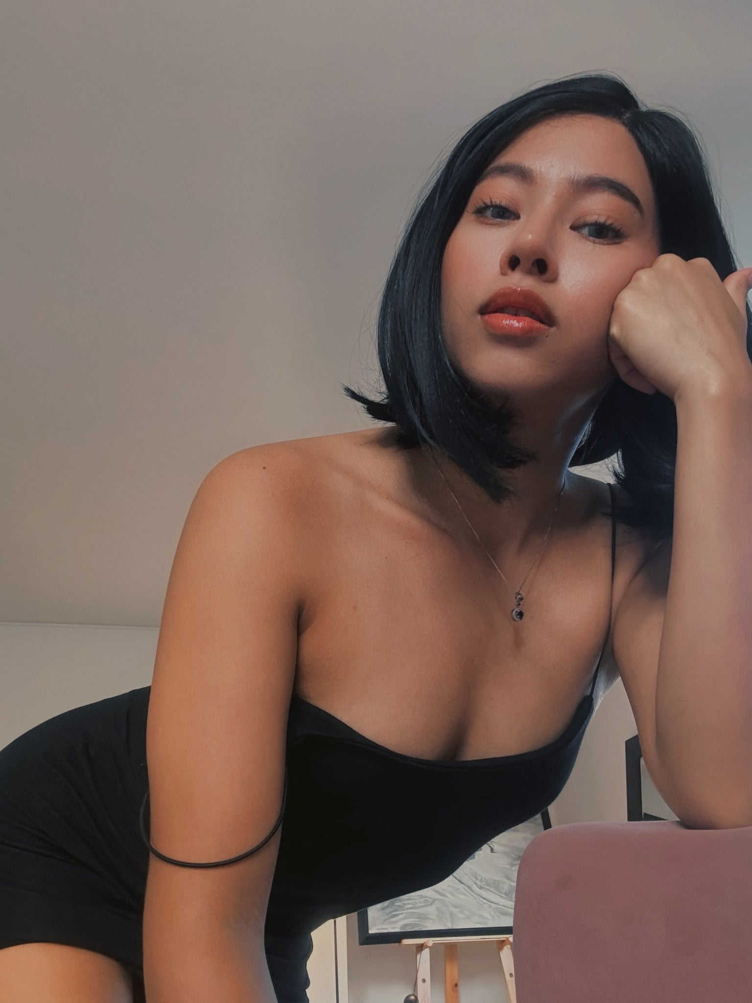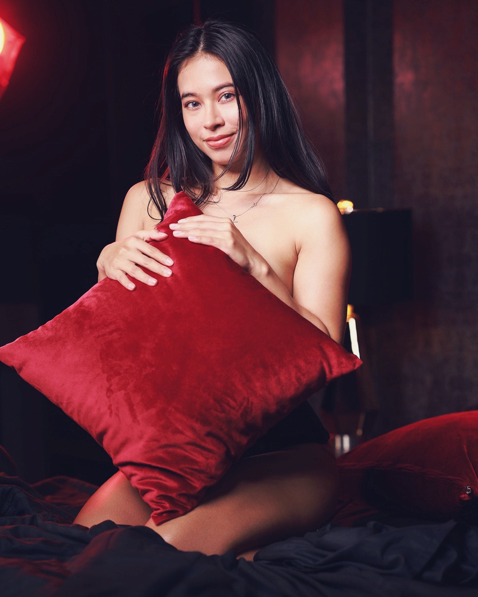 Leyla Gray, solowa dziewczyna z okrągłym tyłkiem, zdejmuje seksowną czerwoną bieliznę