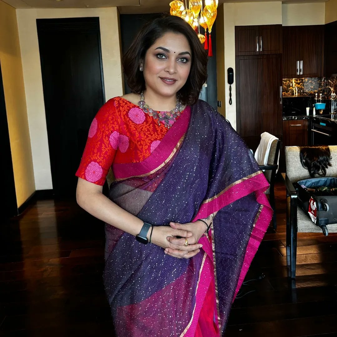 Ramya Krishna, is an Indian actress predominantly known for her work in Telugu and Tamil films, along with appearances in Kannada, Malayalam and Hindi films . Ramya was born on 15 September 1970 in Madras (present-day Chennai) to a Telugu father. She is the niece of Tamil film actor, comedian and former Member of Parliament, Rajya Sabha Cho Ramaswamy. She started her acting career with the Malayalam film Neram Pularumbol. Although this was the first movie where she acted, it had a delayed release in 1986. Her first release was Vellai Manasu in 1985, a Tamil movie opposite Y. G. Mahendra. Her first Telugu film was Bhalae Mithrulu (1986). Then she went on to play supporting roles in Tamil films which include Padikkadavan (1985) starring Rajinikanth where she was given a uncredited role and Per Sollum Pillai (1987) starring Kamal Haasan. In Telugu, she starred with Rajendra Prasad in Madana Gopaludu (1987), Bhama Kalapam (1988), Asthulu Anthasthulu (1988) and Bava Marudula Saval (1988). She worked in Malayalam films such as Orkkappurathu, Aryan and Anuragi with Mohanlal. She enjoyed success in Kannada movies as well. One of her earlier roles as heroine was in Krishna Rukmini opposite superstar Vishnuvardhan. She played a small role in the Hindi film Dayavan that starred veteran actor Vinod Khanna. Breakthrough in Telugu and Hindi (1989–1998) After a series of failures in both Tamil and Telugu, she achieved fame through K. Viswanath`s Sutradharulu, released in 1989. Her breakthrough came from K. Raghavendra Rao directorial movies where she emerged as a commercial romantic diva, due to successful movies such as Alludugaru (1990), Allari Mogudu (1992), Major Chandrakanth (1993) along with Mohan Babu and Allari Priyudu (1993) along with Rajasekhar. She played the role of a devoted wife of Sri Annamacharya, which was played by Nagarjuna in the film Annamayya (1997). In 1998, she played a leading role in Kante Koothurne Kanu. She received a Nandi Award for Best Actress from the Government of Andhra Pradesh for her performance in the film. Her biggest Kannada hits include Gadibidi Ganda (1993) and Mangalyam Tantunanena (1998) with Ravichandran. Ramya made her debut as a heroine in Hindi films with Yash Chopra`s Parampara (1993). She acted in a few more Hindi films including Subhash Ghai`s Khalnayak (1993), Mahesh Bhatt`s Chaahat (1996), David Dhawan`s Banarasi Babu (1997), Bade Miyan Chote Miyan (1998) along with Amitabh Bachchan and Govinda and Shapath with Mithun Chakraborty. Comeback to Tamil cinema and Debut in TV serials (1999–2014) After a four-year break from Tamil cinema, in 1999, Ramya played the female antagonist, Neelambari in Padayappa opposite Rajinikanth. The critic from Rediff stated "Ramya does a fantastic job. She is vicious to her dying breath, when she declares she will revenge herself in her next life. She does a fabulous tandav of rage when her father commits suicide".[6] She went onto receive several awards including Filmfare Award for Best Actress - Tamil and Tamil Nadu State Film Award Special Prize. She then starred in commercially successful films like Budget Padmanabhan and Panchatanthiram. The critic from Screen called her performance in Panchatanthiram "one of the finest performances ever".[7] Ramya has also acted in many devotional films including Rajakali Amman (2000), Nageswari (2001), Sri Raja Rajeshwari (2001) and Annai Kaligambal (2003). Her notable film in Malayalam was Ore Kadal (2007) with Mammootty, which received the National Film Award for Best Feature Film in Malayalam. She had acted as the mother-in-law of N. T. Rama Rao Jr. in the movie Naa Alludu (2005) marked for her role and later in the film Konchem Ishtam Konchem Kashtam (2009). She also appeared in a guest role in item songs in Tollywood and Kollywood. She turned to acting in TV serials before hosting a game show called Thanga Vettai, on Sun TV, and judging a dance show, Jodi Number One, on Vijay TV. Ramya is stepping in television serials for the first time. She was seen in Kalasam in two roles. One of them is Neelambari, a character she played in the Rajinikanth starrer Padayappa. In 2009, she appeared in Suresh Krissna`s Arumugam and Rama Narayanan`s Kutti Pisasu.[8] She continued her stay under the Sun TV banner to act in Thangam, Vamsam and Rajakumari. Later, she acted in supporting roles in Telugu as Ranga The Donga (2010), Yamudiki Mogudu (2012) and in Kannada as Sweety Nanna Jodi (2013) and Maanikya (2014). 2015–present The Vice-President, Venkaiah Naidu giving away a special award to film artiste, Ramya Krishnan, at the 30th Ugadi Celebrations & Puraskar Presentation - 2018, organised by Delhi Telugu Academy, in New Delhi In 2015, Ramya acted in S.S. Rajamouli`s film Baahubali: The Beginning and its sequel Baahubali: The Conclusion, where she played Rajamata Sivagami Devi. Her performance met with the critical acclaim and the films became the highest grossing Indian films. Sangeetha Devi Dundoo praised Ramya`s performance and stated "Ramya Krishnan once again aces with her part".She received the Filmfare Award for Best Supporting Actress - Telugu for both films. In 2019, she played a porn actress in Super Deluxe directed by Thiagarajan Kumararaja. Srivatsan S from The Hindu stated her role as "boldest role yet She made her debut in the digital platform with Queen in 2019.[12] The critic from India Today stated, "Ramya Krishnan as the failing actress and a budding politician (the later part of Shakthi`s life) puts in a measured performance and it is what stands out in a series that relies heavily on performances".In 2022, Ramya appeared in Dharma Productions and Puri Jagannadh`s sports action film Liger.The 2023 Tamil film Jailer featured Ramya in the lead role as Rajinikanth`s wife