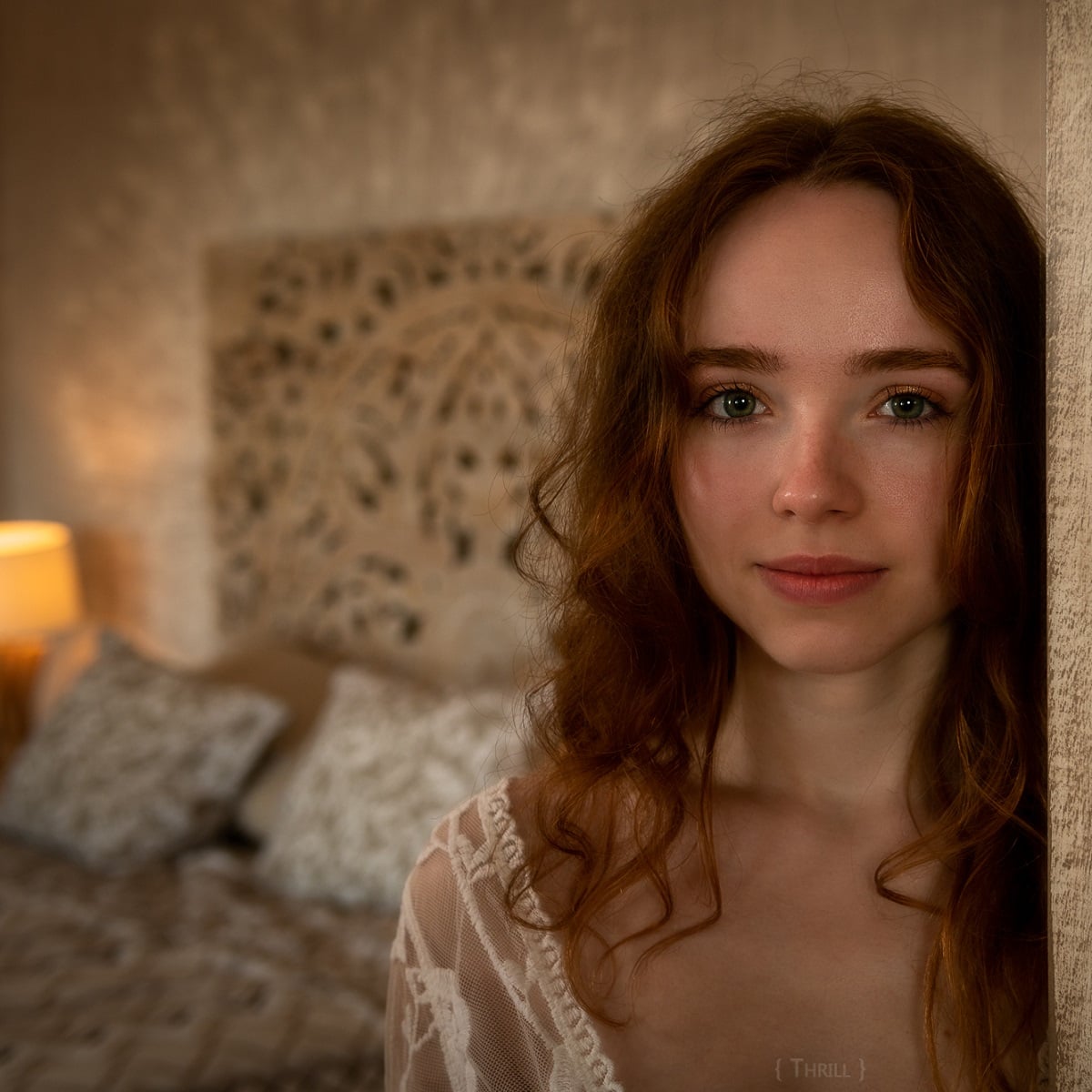 Rudowłosa ślicznotka Rinna Ly rozbiera się zupełnie nago w salonie