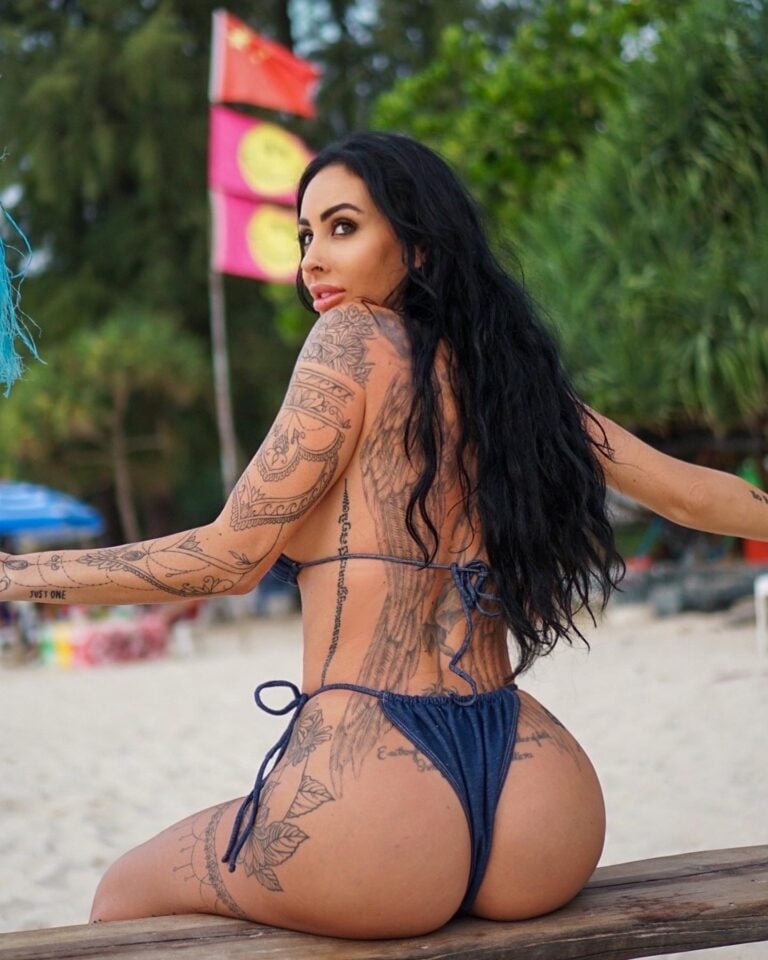 Napalona wytatuowana laska Danae Mari rozprzestrzenia się szeroko, zapewniając głębokie ruchanie